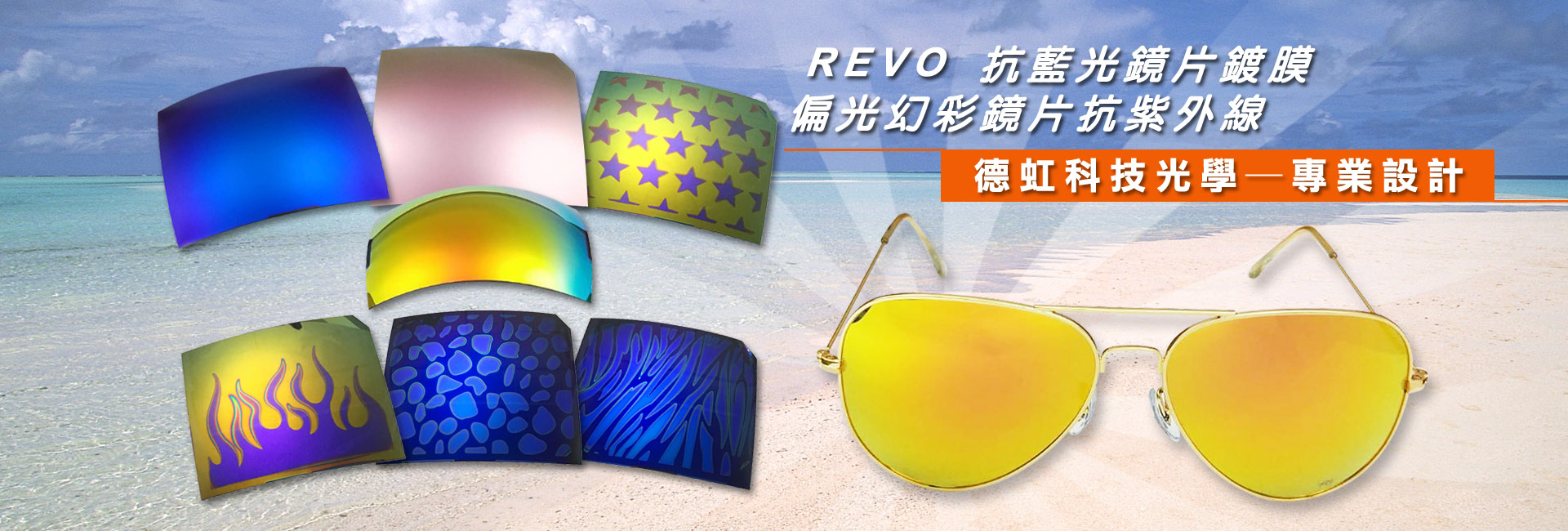 主要產品:鍍膜鏡片, 鏡片鍍膜, 偏光夾片, 偏光太陽眼鏡, 閱讀眼鏡, 偏光太陽眼鏡夾鏡, 抗藍光鏡片, REVO鏡面遮陽帽, 飛行太陽眼鏡