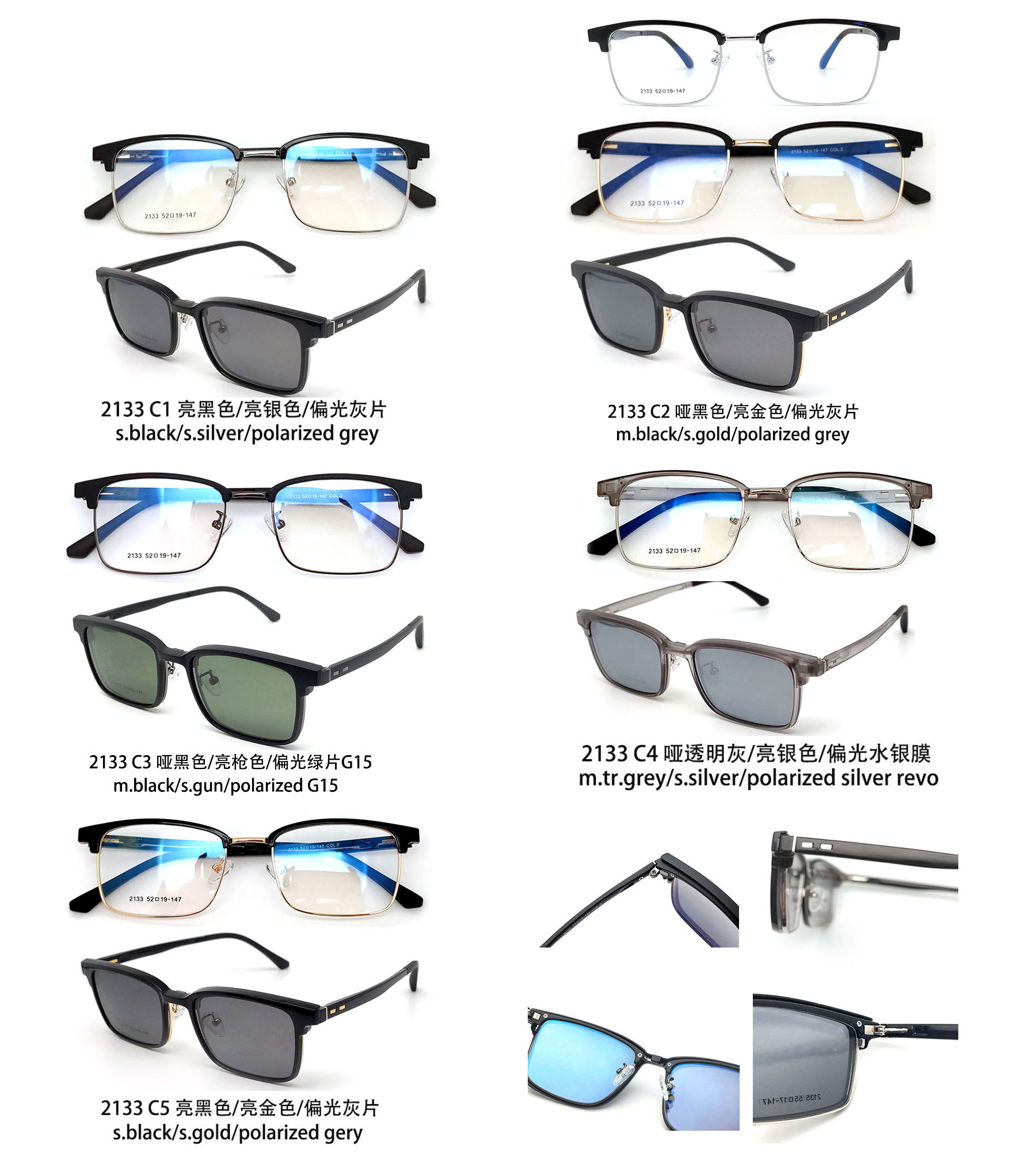 (DHTJ2133)金屬框眼鏡/可拆式太陽眼鏡/時尚套鏡接受進行原廠委託代工製造OEM