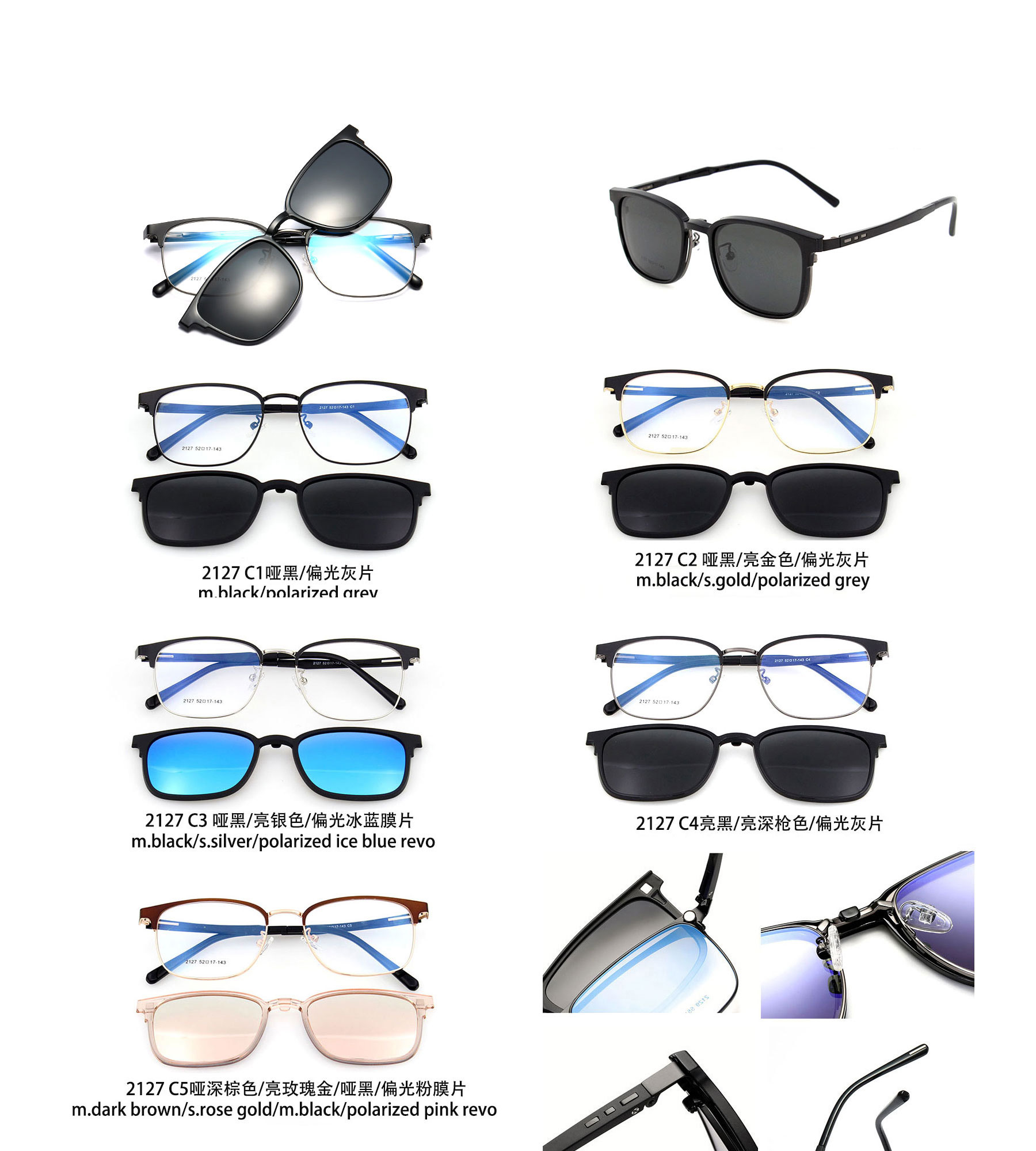 (DHTJ2127)金屬框眼鏡/可拆式太陽眼鏡/時尚套鏡接受進行原廠委託代工製造OEM